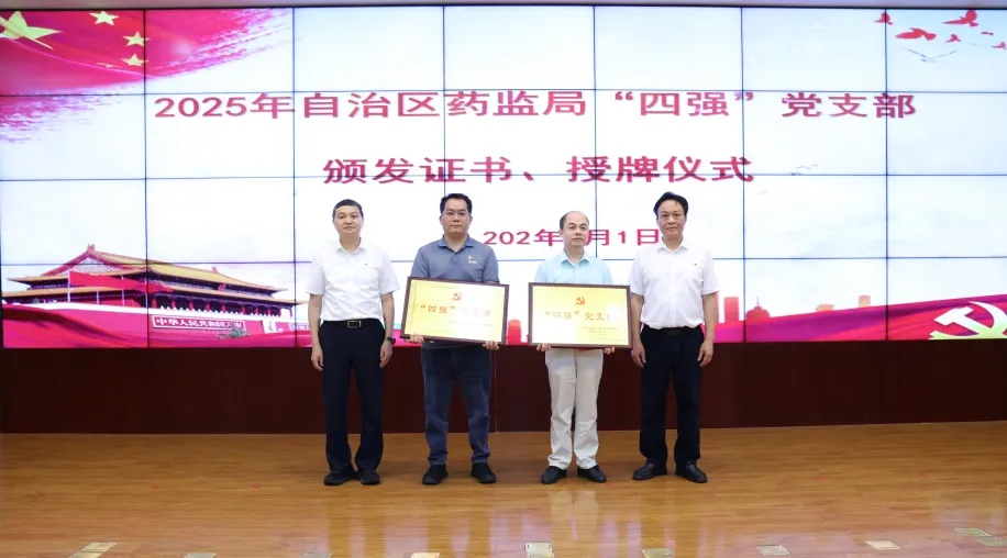 会议对AG百家乐2024—2025年度在药品监管工作中担当实干、创先争优的先进集体和个人进行通报表彰。同时通报2025年全区药监系统“四强”党支部评定和复查结果,并为获评“四强”党支部的单位颁发证书、授牌。大会还向四名老党员颁发“光荣在党50年”的纪念章,致敬他们为党和药监事业作出的贡献。